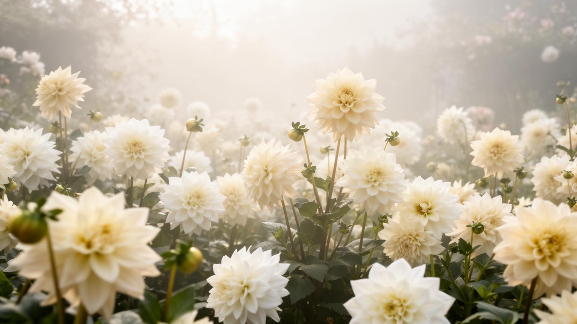 Il y a, dans les jardins blancs, quelque chose qui tient du privilège silencieux. Pas de cris, pas d'éclat — seulement la lumière qui passe, le vert qui respire, et ces fleurs ivoire qui semblent flotter au-dessus du feuillage. C'est précisément ce que les dahlias crème et blancs offrent : une élégance retenue, une profondeur chromatique trompeuse, et une présence qui s'impose sans jamais forcer.